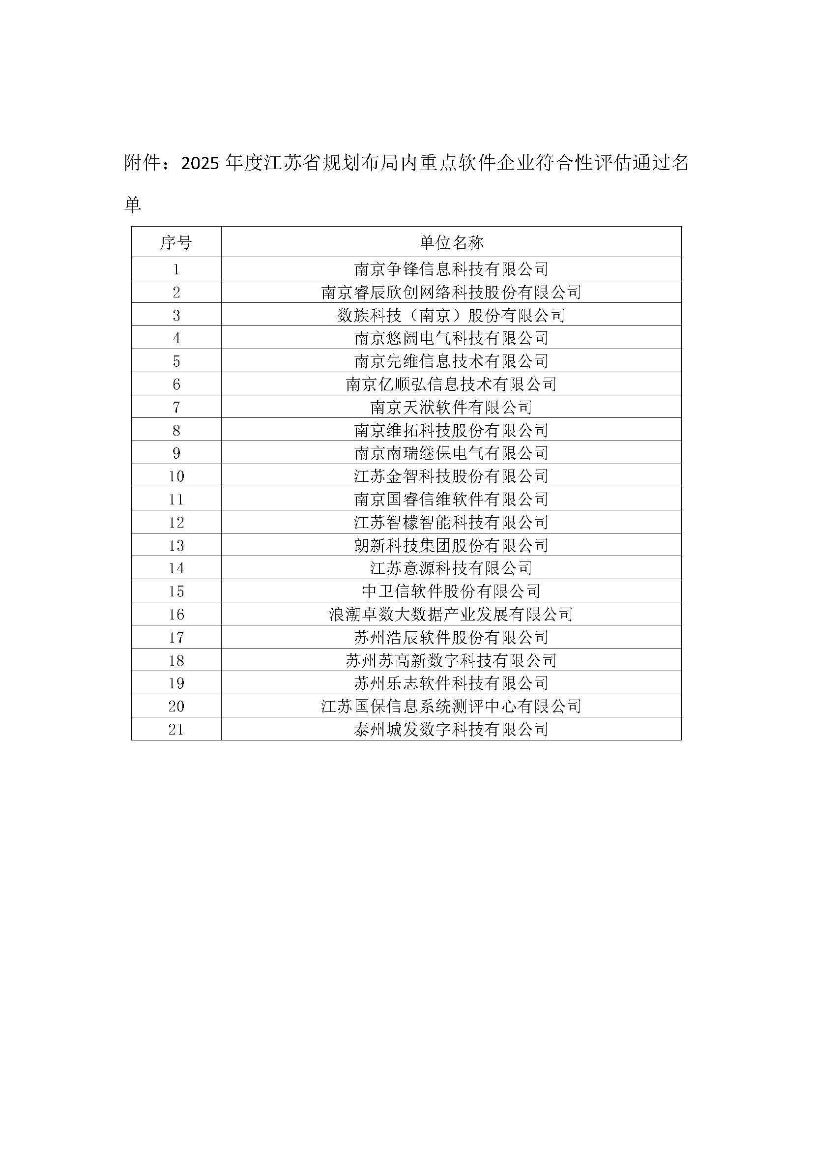 附件:2025年度江苏省规划布局内重点软件企业符合性评估通过名单
